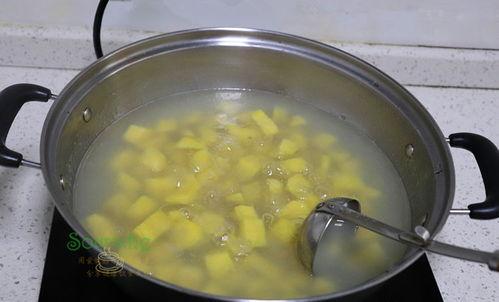4. 煮水:将哈密瓜块放入锅中,加入适量的清水,放入调料。